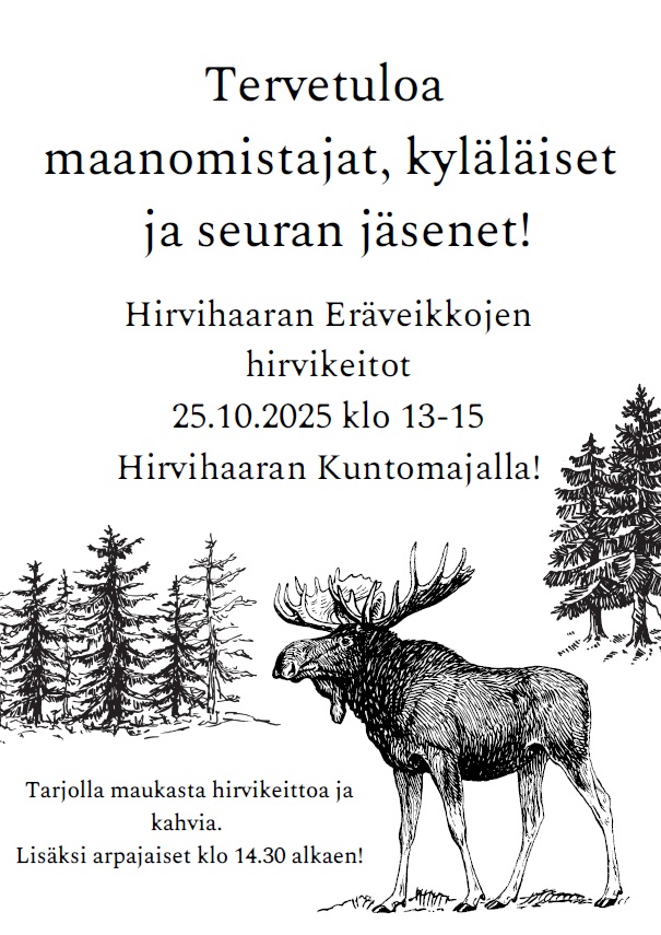 Tervetuloa Hirvihaaran Eräveikkojen kotisivuille – perinteikäs metsästysseuramme kutsuu sinut tutustumaan ainutlaatuiseen luontoelämykseen.